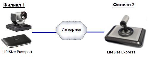 Данный тип видеоконференции – самый простой и наименее затратный, но в тоже время и самый ограниченный по функциональным возможностям вариант, так как одновременно в видеоконференции смогут участвовать только 2 филиала. Для проведения видеоконференции достаточно установить в каждом из офисов по 1 единице оборудования LifeSize, например, LifeSize Passport, LifeSize Express или даже ноутбук или компьютер с программой LifeSize® Desktop™.